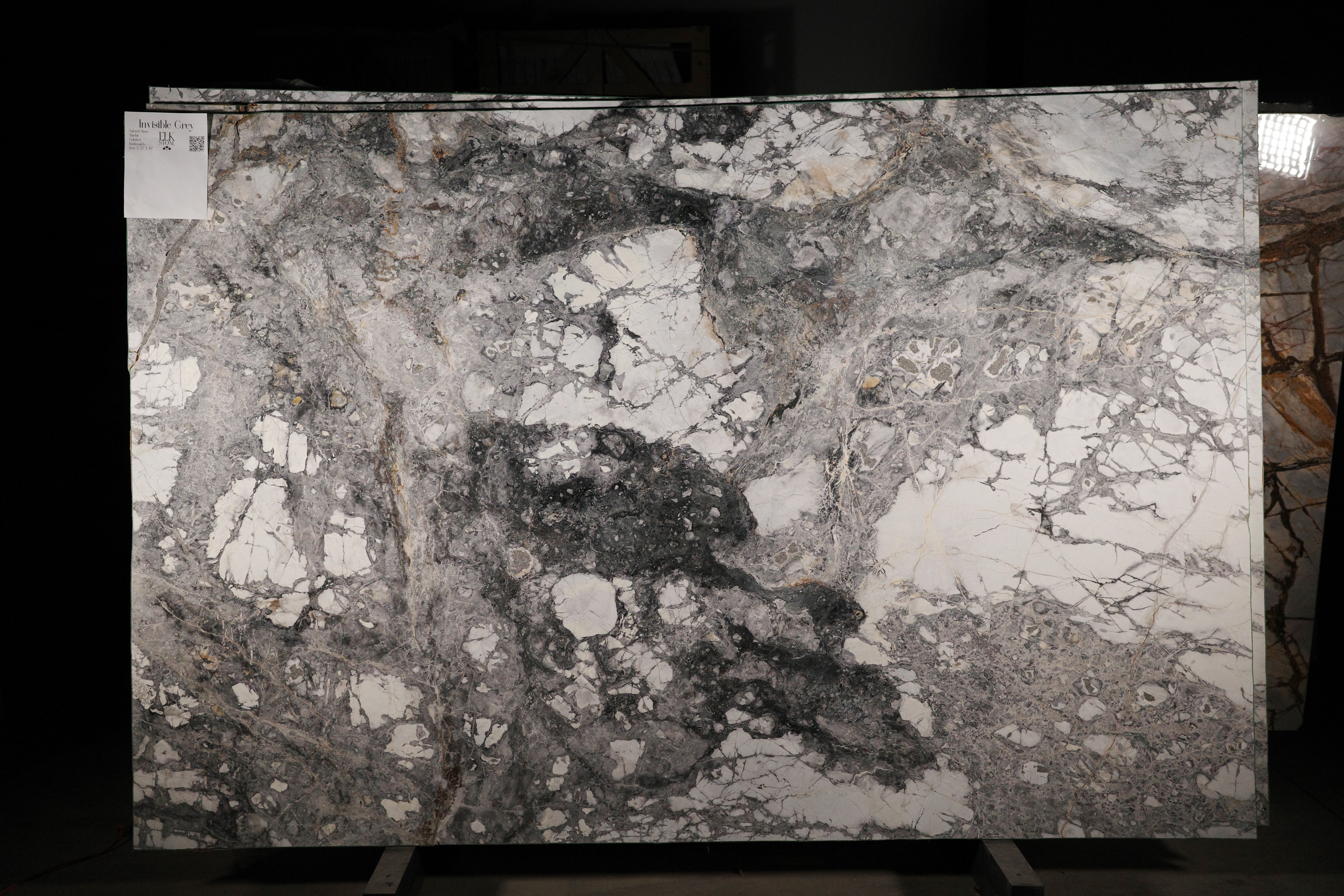 Invisible Grey marble slab features a bold interplay of smoky greys and crisp whites, arranged in a fragmented, mosaic-like pattern that evokes the energy of nature suspended in motion. Its raw texture and dramatic contrast make it ideal for statement walls, bold kitchen islands, upscale bathrooms, and modern commercial interiors.